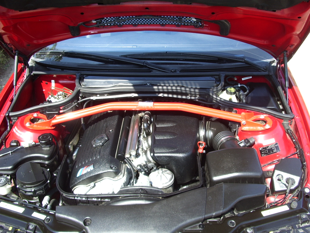 asi tak pred rokom a pol som sa začal obzerať po nejakom výkonnejšom aute, pretože rýchlosť ma vždy lákala,predtým som nejaký čas skúšal aj motorky mal som 98 koňovú yamahu fazer,a hondu crv načipovanu na 170koní,išla pekne ale suv je suv a nie športiak,tak po obzeraní sa aby auto malo nejaký výkon aj slušný ročník som sa začal pozerať po nissane 350Z, no po čase ked som hladal, mi došlo,že ak to auto mám používať aj normálne potrebujem štvormiestne a nie dvojmiestne auto,kedže mám rodinu,a tiež sa mi zdalo že výkonovo by som chcel isť vyššie tak voľba podla na bmw M3 E46, chcel som hlavne zlatu metalízu a vybral som si aj dve v nemecku,ale nakoniec ma ukecala moja cica,ktorú som našiel v čechách, kde bola aj kupovaná a okrem cca posledného roka aj v bmw servisovaná, čo som si overil v predajni bmw kde ju servisovali,boli ustretový a podla vin mi povedali kedy tam auto bolo a s akými poslednými kilometrami,takže som vedel .že kilometre budú poctivé,lebo ten rok čo tam nebolo bolo cca pol roka už predávané v autobazary,kde aj stálo,potom som si preveril cez internet,či nieje na neho lizing,či nie je kradnuté a predávané,no čo sa dalo som pozistoval a potom som sadol do auta a išiel pre neho,a tak asi mesiac vlastním krásnu červenú cicu,najprv som dal nastriekať elektrony a auto som nechal týžden na tehlách akurát cez veľkonočné sviatky-sused mi skoro prestal zdraviť aj ked som stál na mestskom pozemku ale jemu vadilo ,že má zlý výhľad,jednoducho nechápe, že pohľad na M3 z okna je určite lepší ako na nejaký plot,no ale čo už,popri tom som nastriekal brzdové čeluste na červeno, objednal som červené pásiky na kolesá.