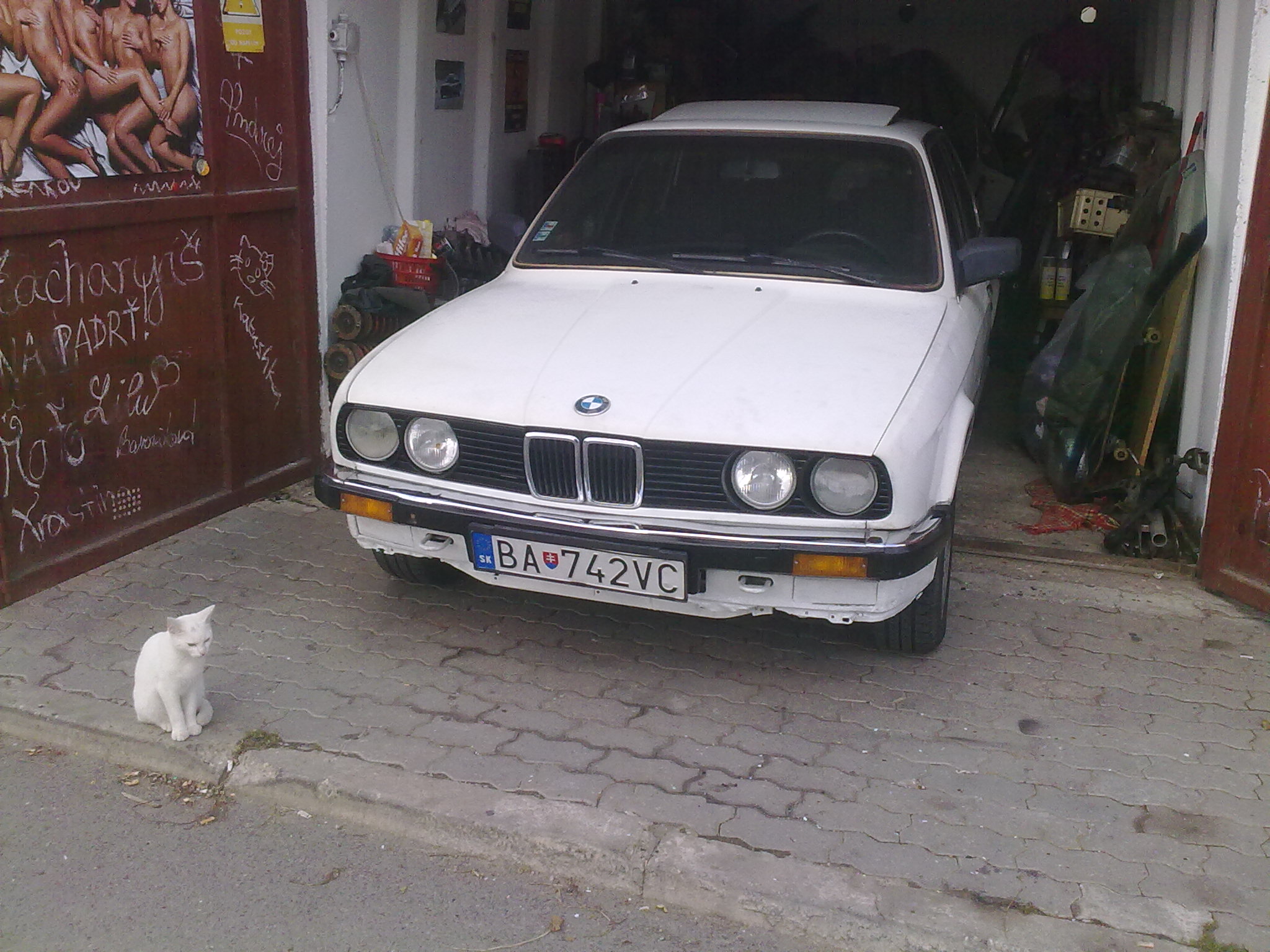 Cize predstava bola asi nasledovna : E30 - 324d (jedine non turbo) funkcny motor, brzdy, platne papiere, kasna nech je kludne hnila jak chce, hlavne nech to drzi pohromade, funkcne nemusi byt absolutne nic okrem motora, siber by bol vyhodou. Uz som zhromazdoval financie a hladal po inzeratoch a rozhodoval som sa pre ktoru z tych co boli v ponuke si pojdem. Ale jedneho dna sme boli u znameho po diely na tricu a spomenul ze jeho znamy ma auto presne podla mojich predstav, s ktorym chodi iba na ryby a inak ho nepouziva a kludne by to za par korun predal. Takze sme to isli pozriet, a uz pri prichode k sidlisku som ju zbadal ako tam stoji - presne taka ako som si ju predstavoval, moja buduca chrchla! Po obhliadke som zistil ze v podstate splna moje poziadavky, a ma aj siber, tak som si ju vzal hned domov. Hodlam ju dat trosku dohromady nech to nevyzera na prvy pohlad ako ciganske vozidlo, ale ziadne hrozne investicie v tom utopit neplanujem, uz ma napadlo aj dat ju troska do ratstylu ale este nejsom celkom rozhodnuty