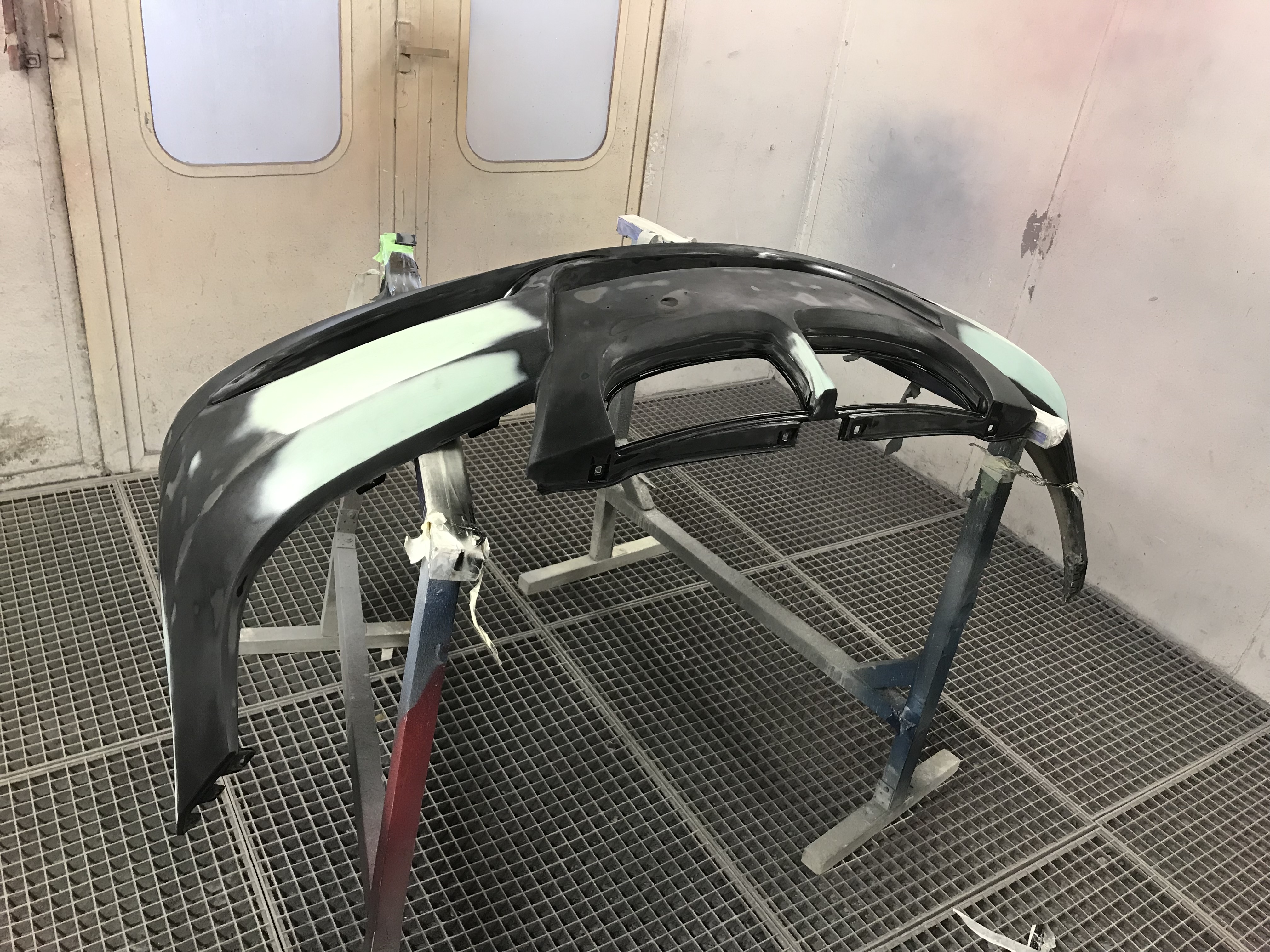 Po obrúsení, vytvarovaní, vyfúkaní a odmastnení dielu nanesiem na nárazník tenkú vrstvu základu na plasty a po odvetraní cca 5 - 10 minút, nanesiem 2 - 3 vrstvy plniču.