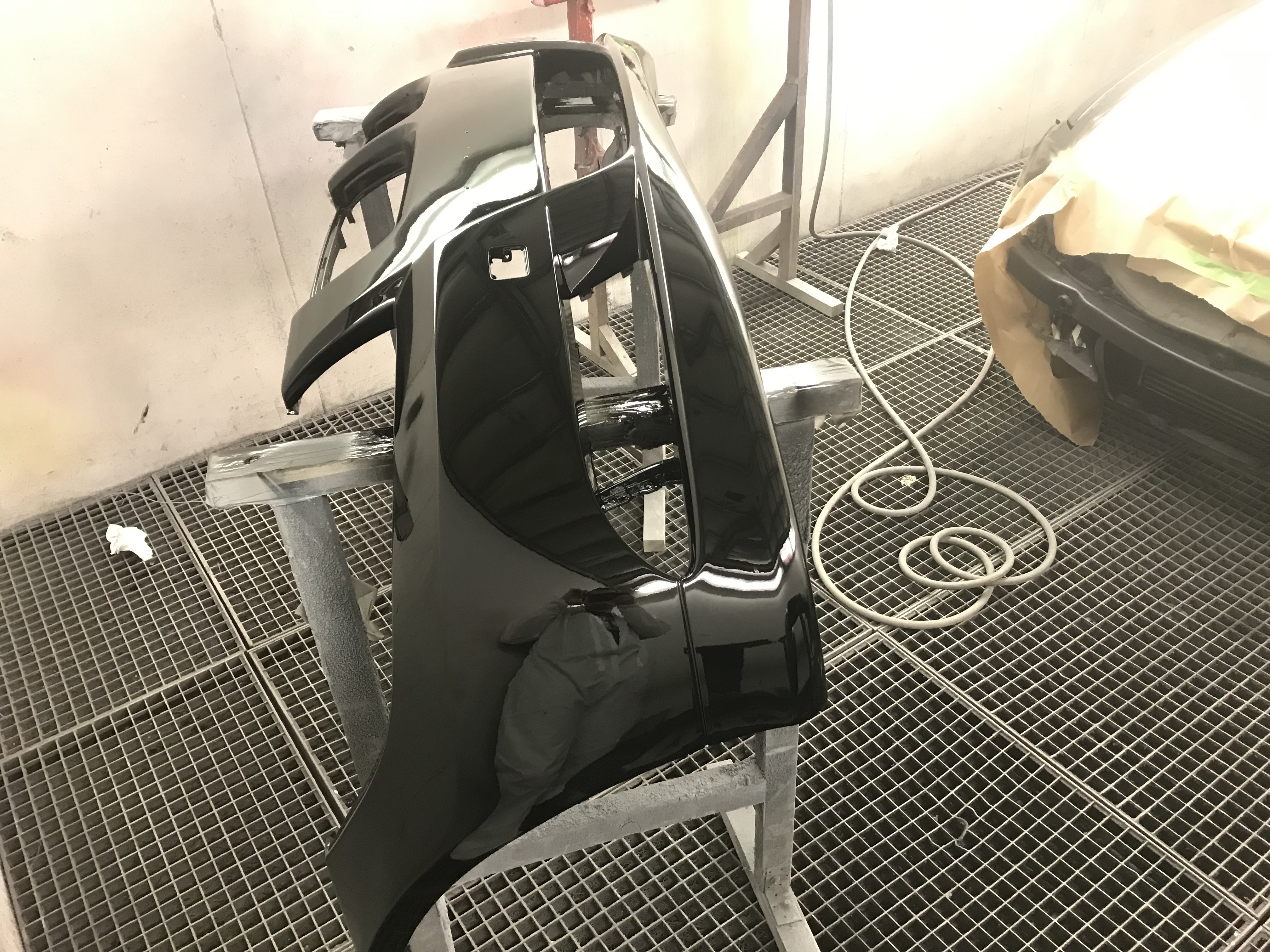Nanesenie 2 vrstiev číreho laku, prvá je ľahšia, tenšia. Druhá je plná a jednoliata, aby sme dosiahli peknú rovnomernú štruktúru laku na celej ploche nárazníka. Dávame hlavne pozor na rovnomerné nanášanie, a správnu lakovaciu techniku nakoľko číry lak má tendenciu k stekaniu pri nanesení príliš hrubej vrstvy a vytváraniu efektu " pomarančovej kôry" pri nanesení príliš tenkej/suchej vrstvy. Lak následne necháme vyschnúť cca 8 - 12 hodín a až po úplnom vytvrdnutí montujeme.