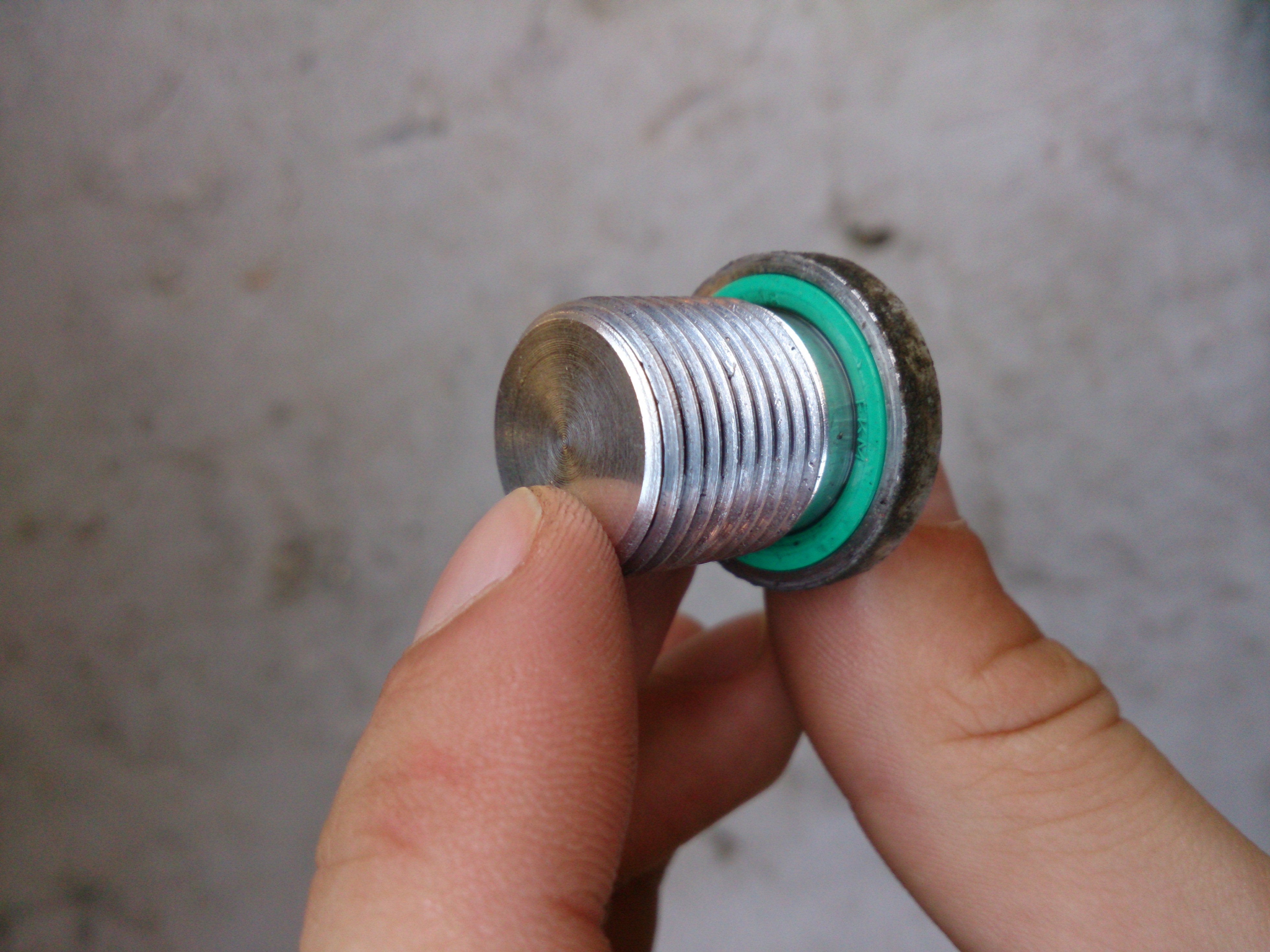 4) Teraz vrátime späť spodnú vypúšťaciu skrutku a dotiahneme. (Pokiaľ máte momentový kľúč tak na 35Nm). Následne môžme začať pumpovať olej cez bočný plniaci otvor až pokým nezačne olej vyťekať (mne sa zmestilo cca 1,6 L a aj som toľko vypustil). V prípade že nemáte k dispozícii adekvátnu pumpu, dobre poslúži aj umelá striekačka Janett, ktorú kúpite v lekárni.