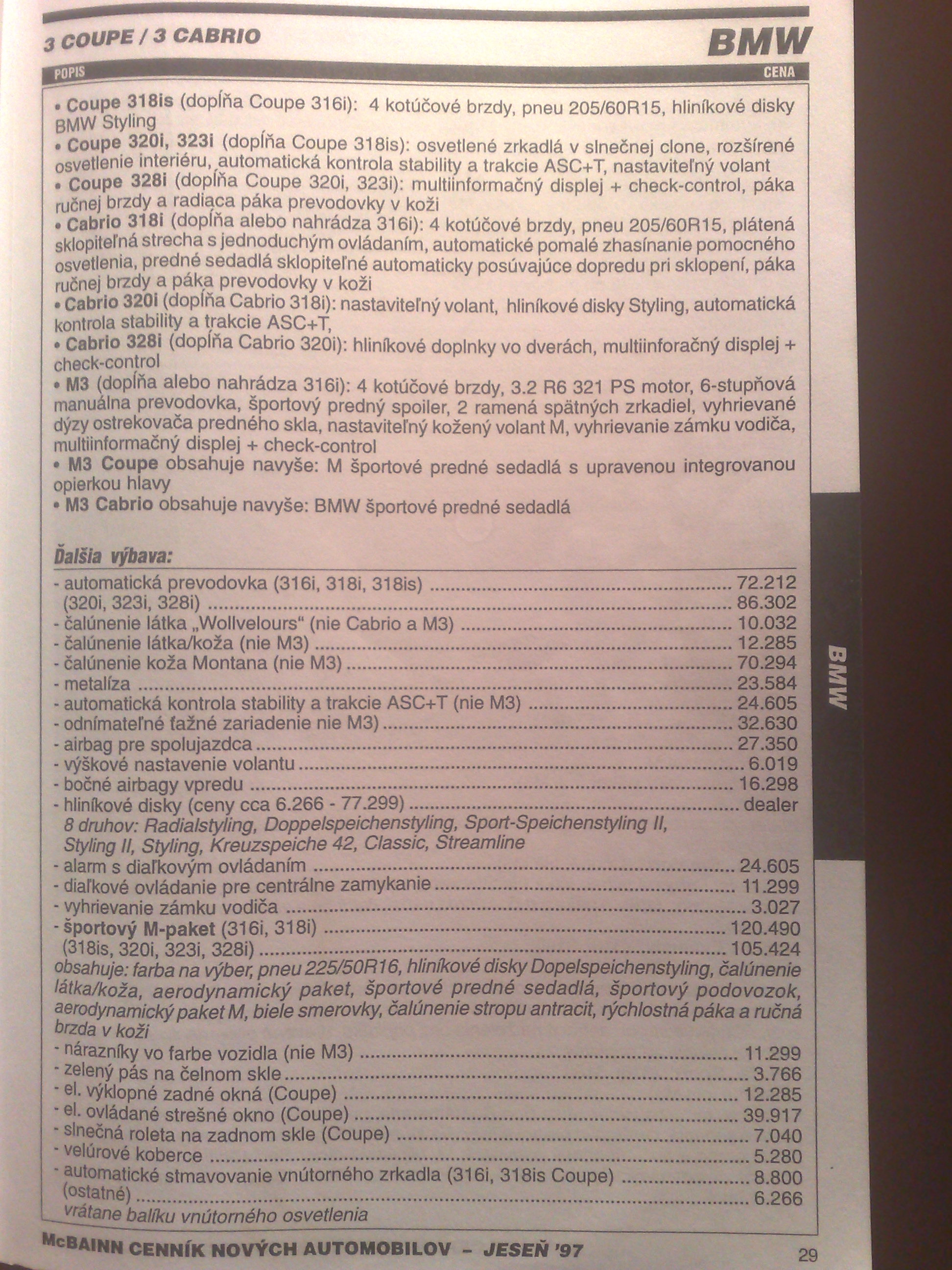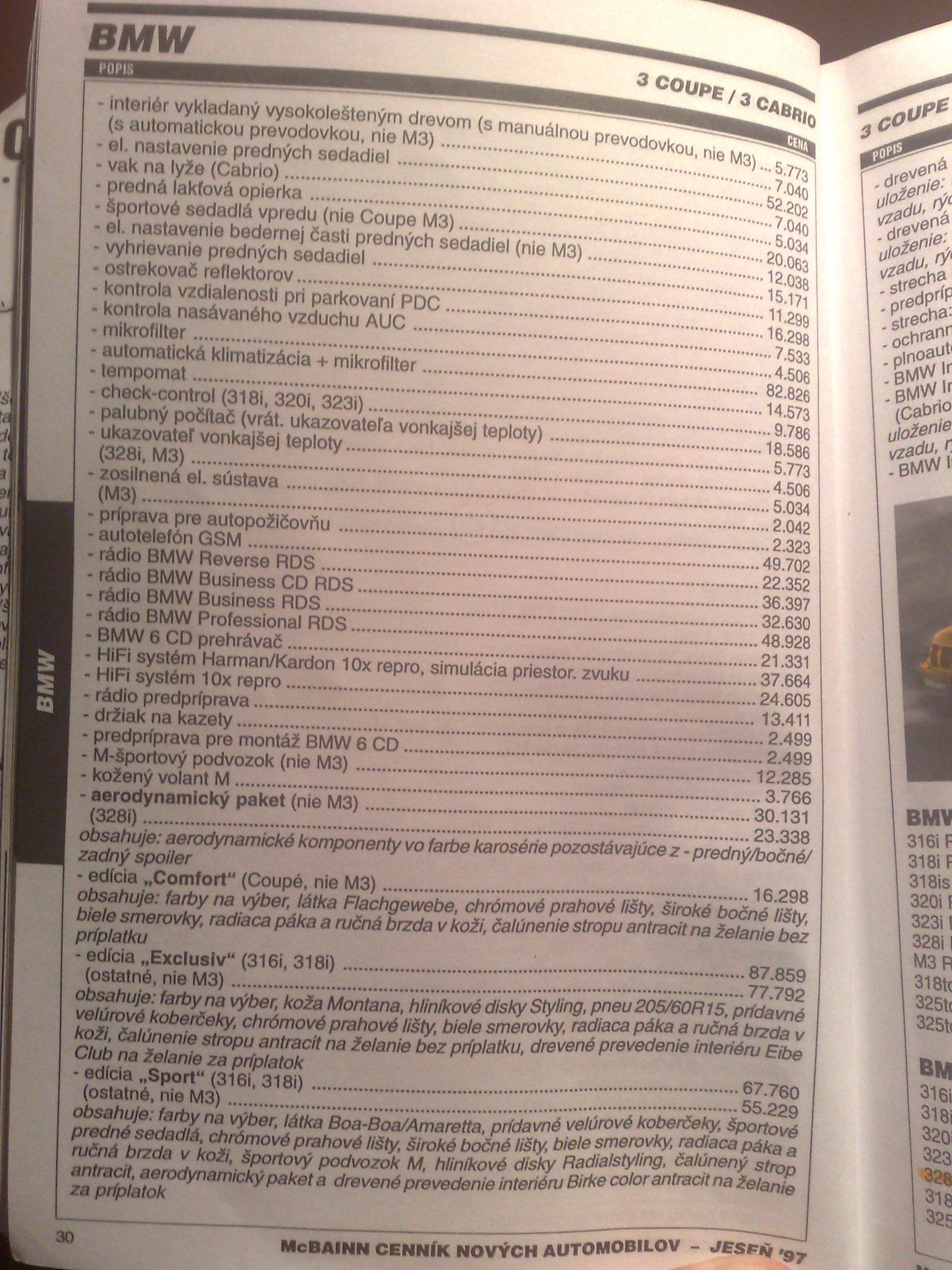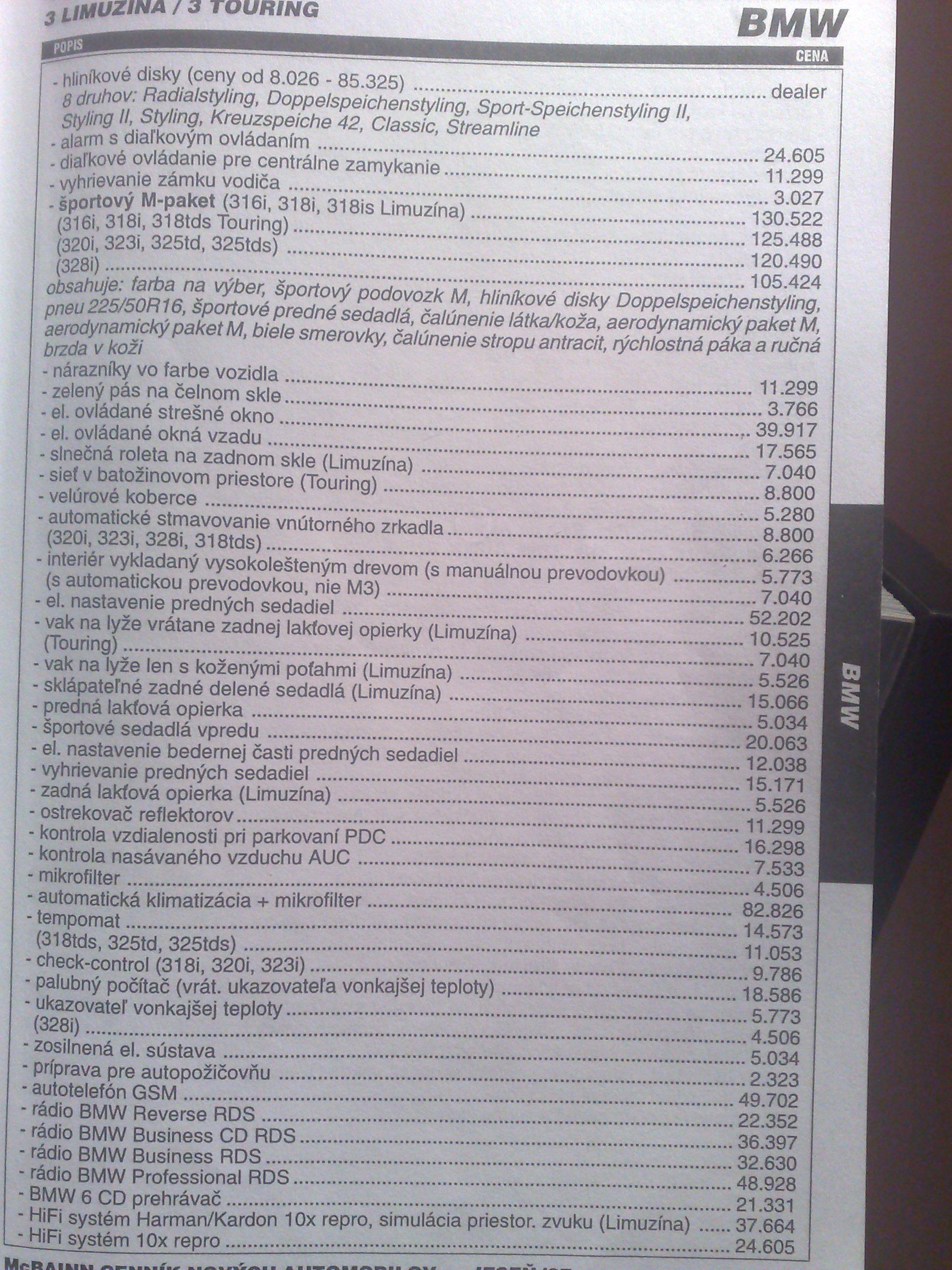 - autotelefón GSM (520i, 523i, 525tds vrátane rádia Bussines RDS)..............................53 962,-sk