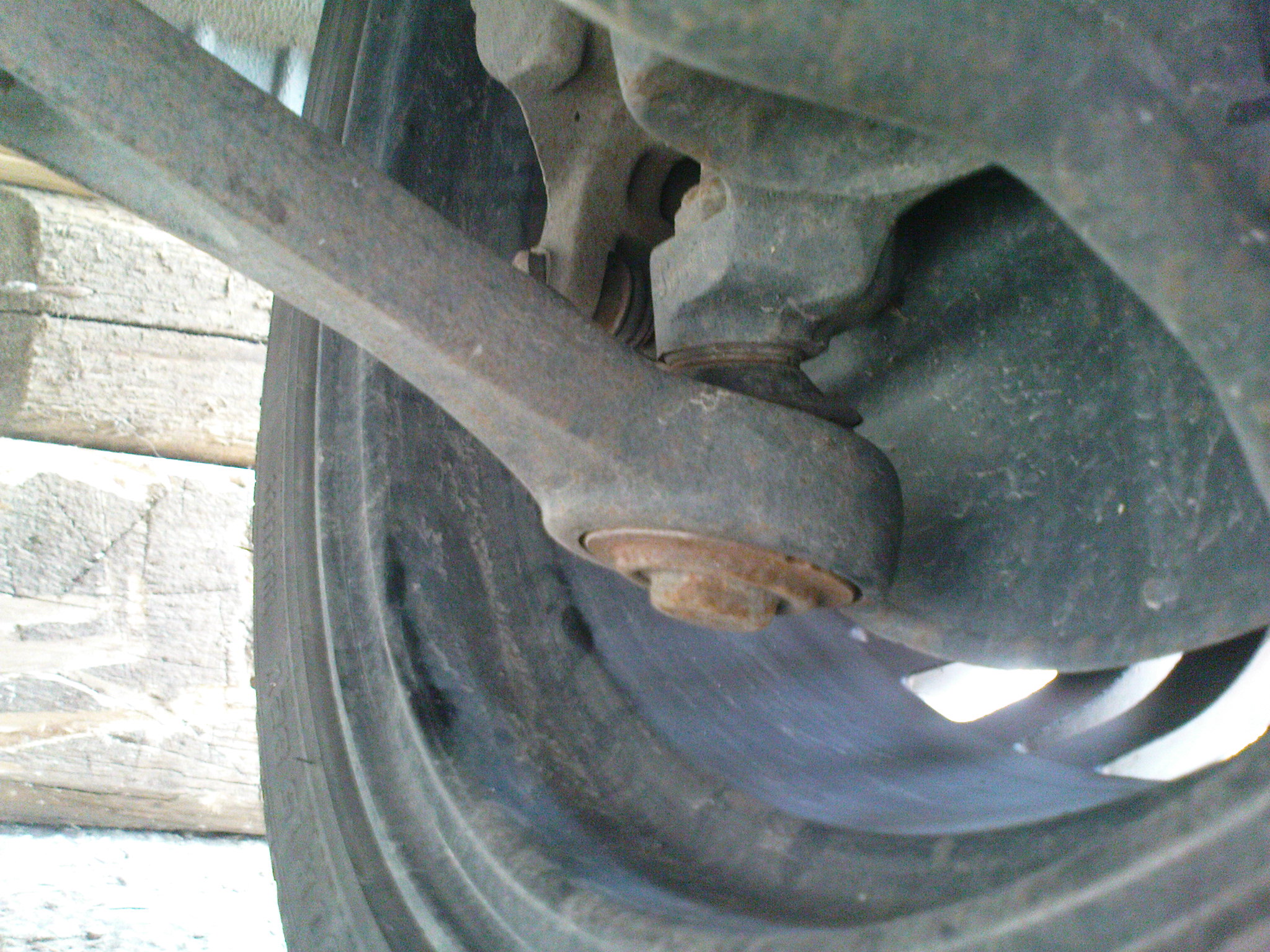 Caute, takže jedná sa o E30 316i ....pred nejakým časom začalo triasť volantom pri rýchlosti cca 110-120km/h. Dnes som menil olej, tak som si všimol, že lavé predné kolesom má vôľu, ktorej príčina je na nasledujúcich fotkách: